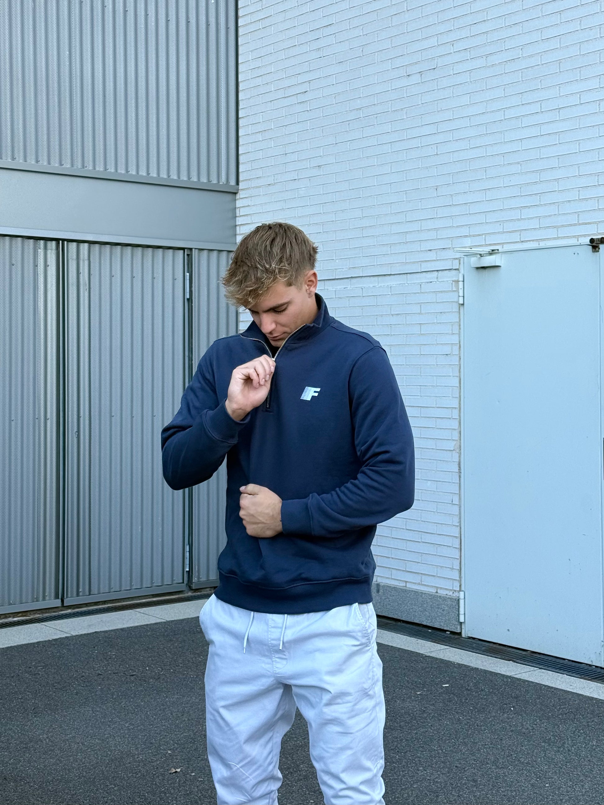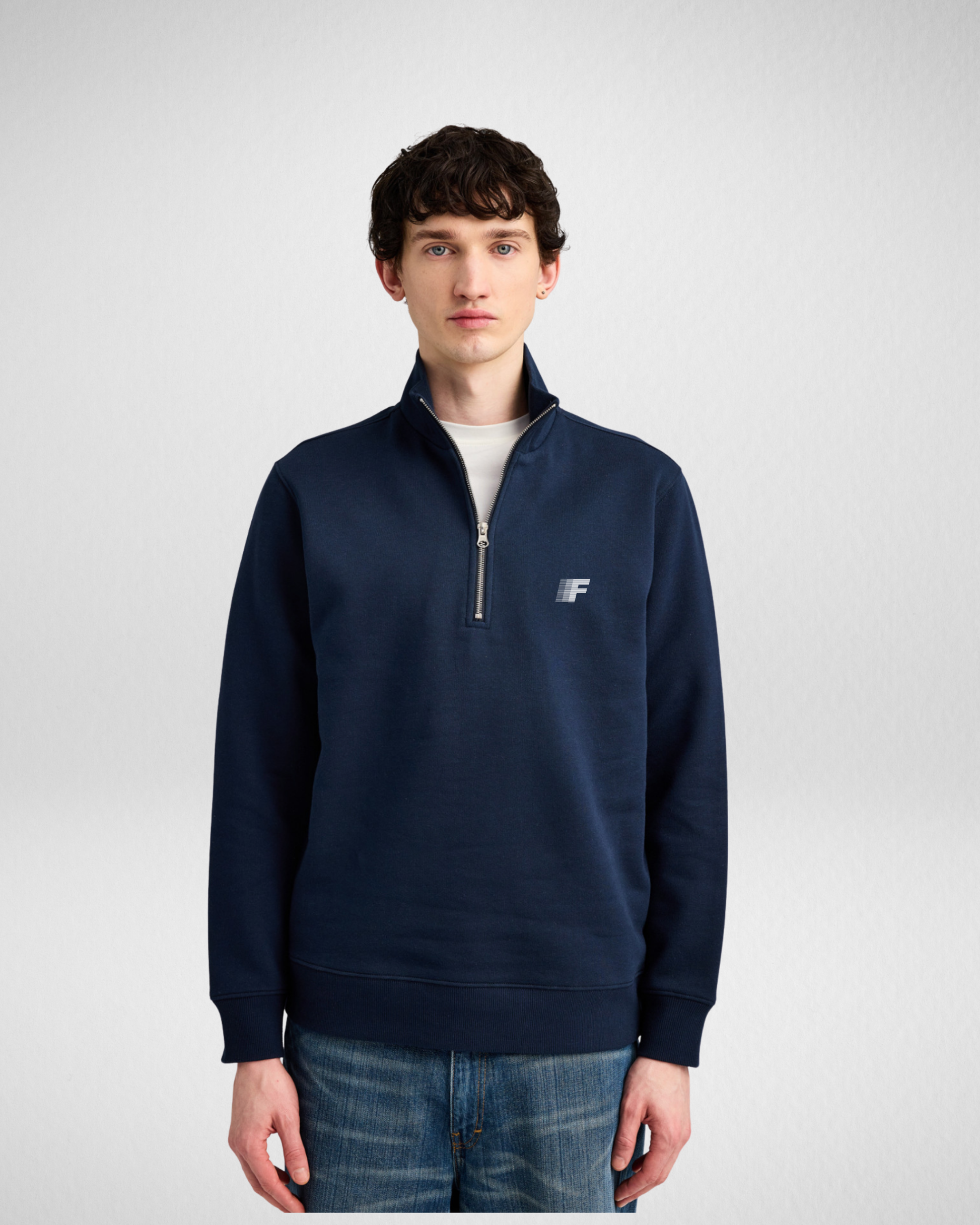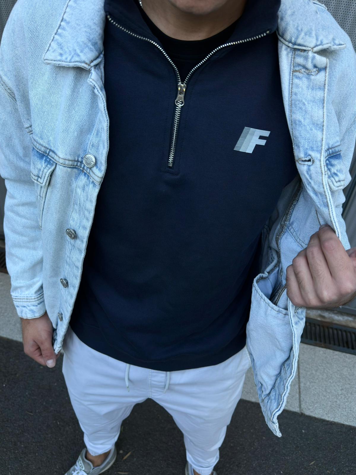 Detalles técnicos: Color azul marino. Media cremallera metálica. Cuello alto estructurado.