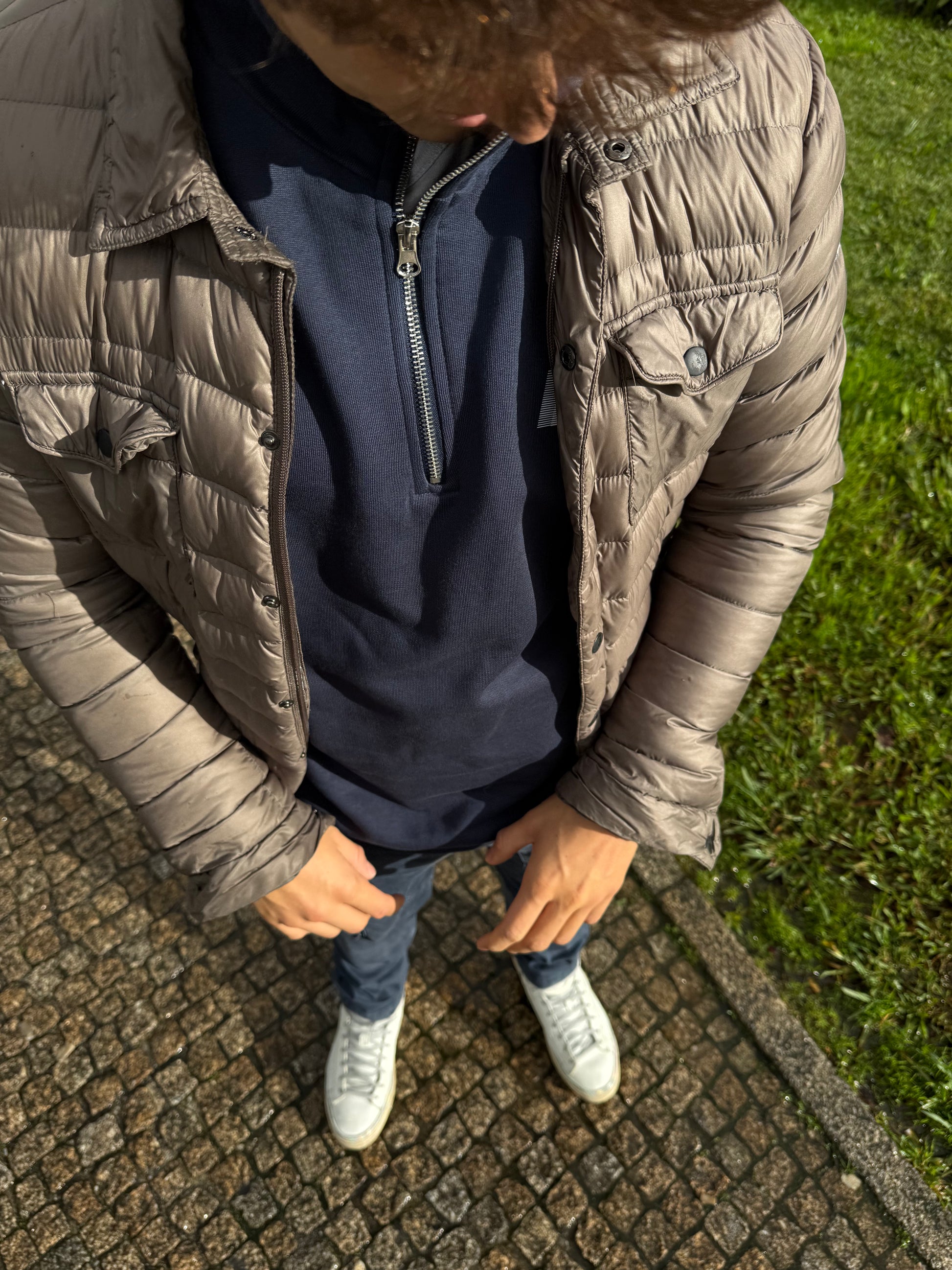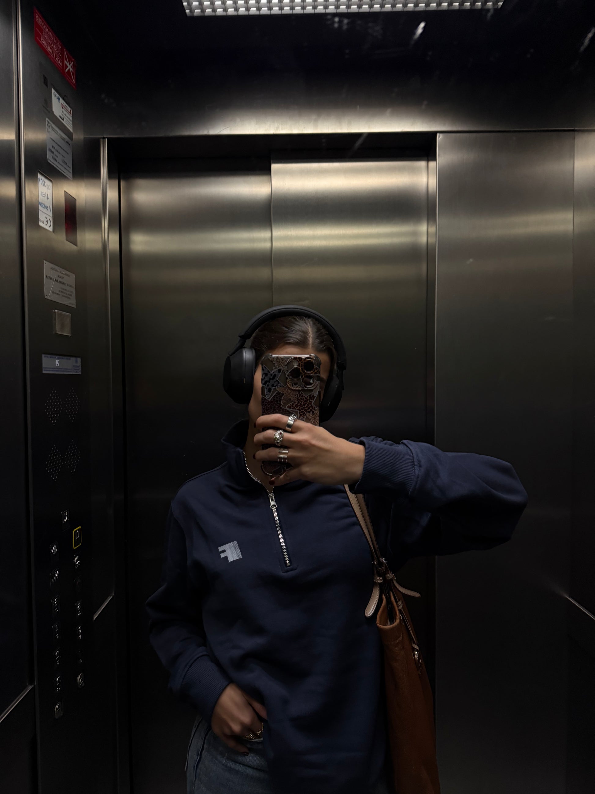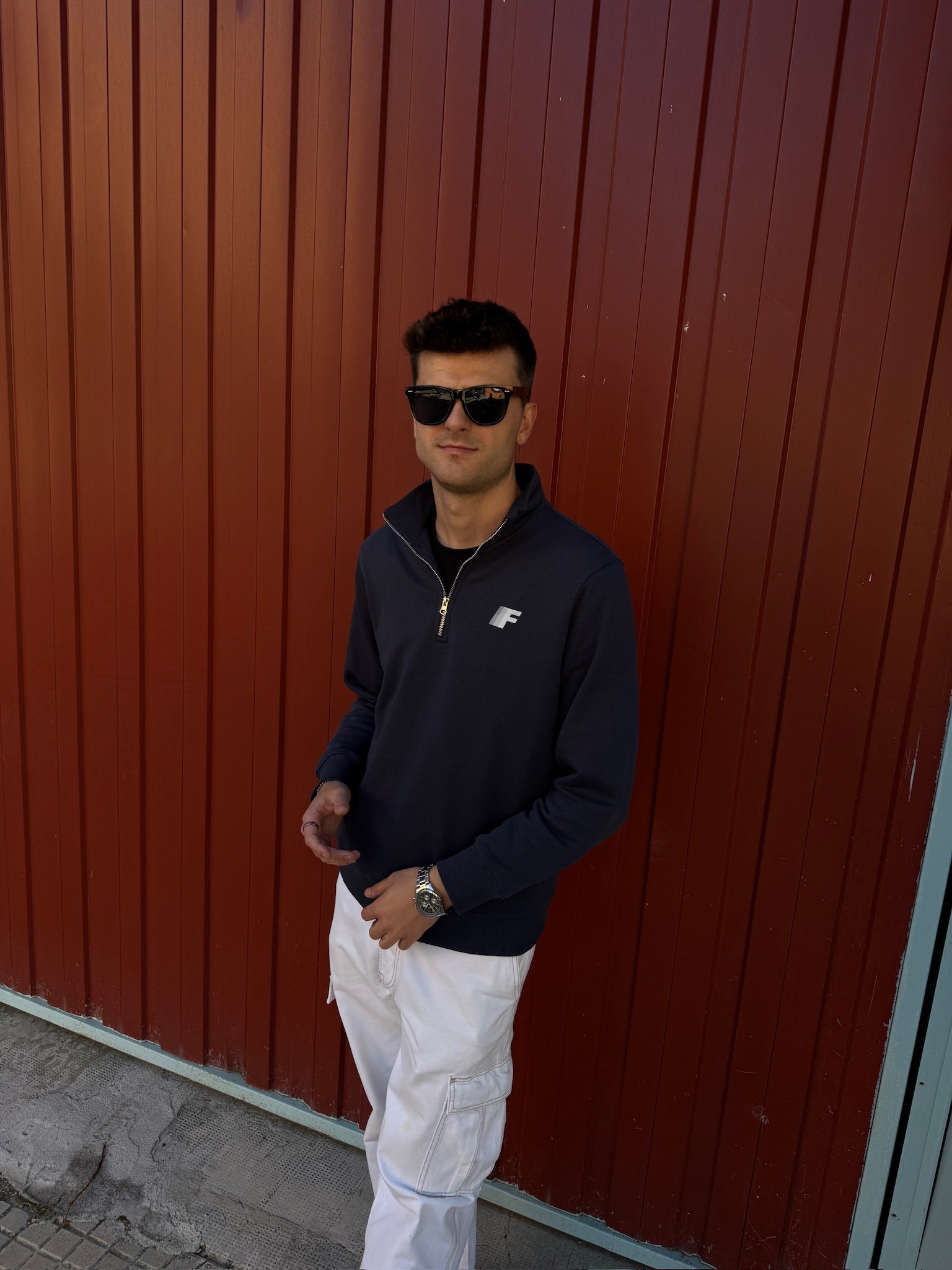 Detalles técnicos: Color azul marino. Media cremallera metálica. Cuello alto estructurado.